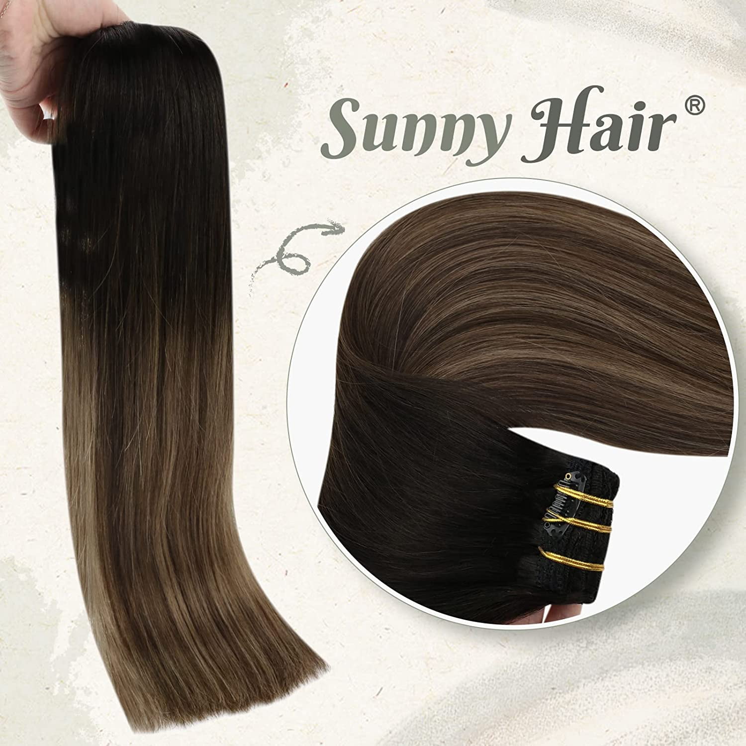 Sunny Clip In Hair Extensions 14 Inch Balayage Off Black To Medium Brown Mixed Caramel Blonde Straight Hair 7pcs 120g Walmart Com